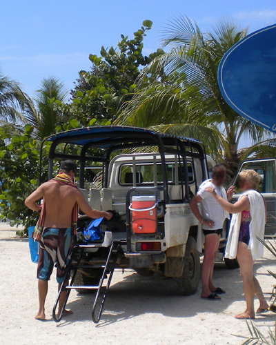 We scheduled an off property snorkel tour through our hotel which was subcontracted through a company called Curacao Underwater Outfitters. A twenty something Curacoan picked us up at the hotel with an elderly Dutch couple from another hotel already in tow. The vehicle was of the sort that makes one appreciate modern safety features like shoulder restraints, seat belts, and air bags. The first thing that came to my mind was that we were going snorkeling in a German troop truck from World War II. Judge for yourself.