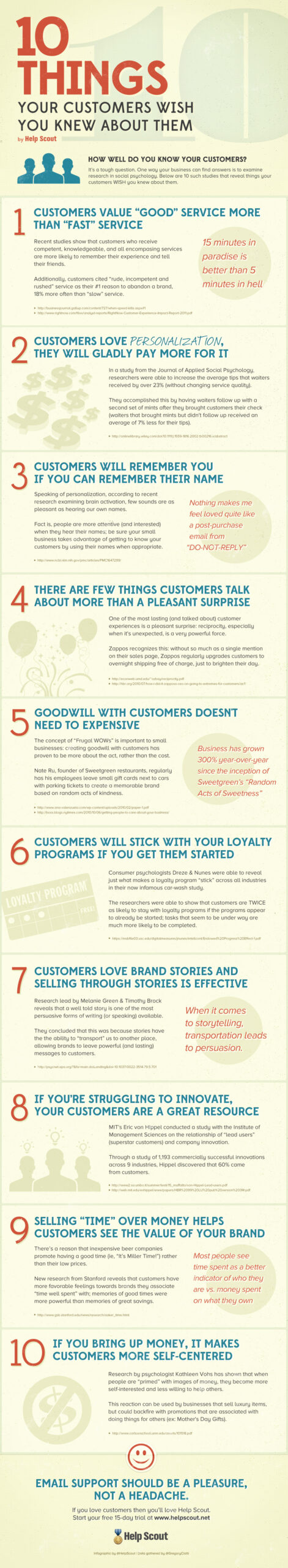 The following infographic — 10 Things Your Customers Wish You Knew About Them — comes from Gregory Ciotti at the Help Scout blog.