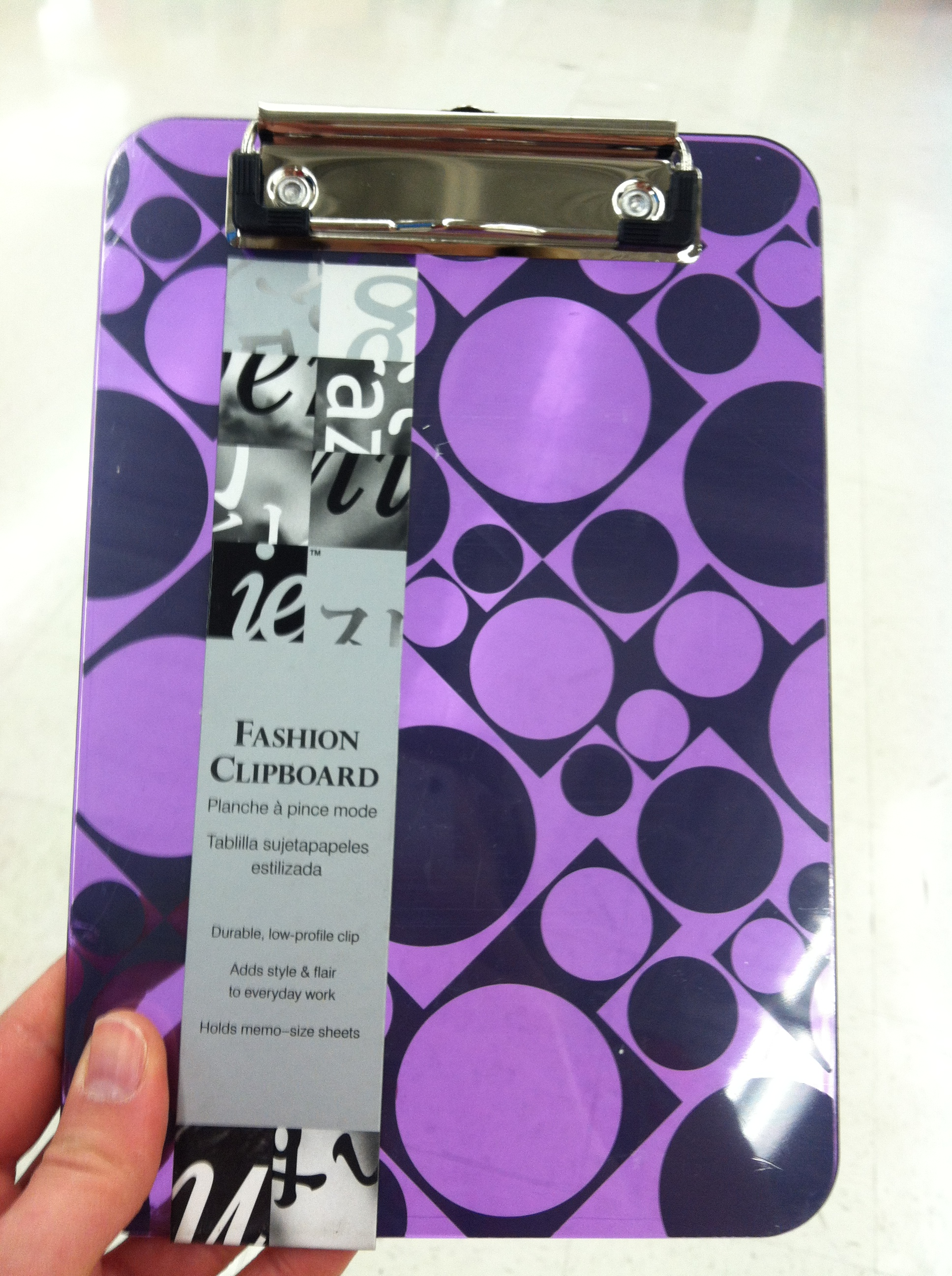 She stood with me while I deliberated over whether to get the clipboards with the purple geometric patterns or the blue checkers. After about a minute, I told Lucy that I would text a photo to my boss for approval, and told her, “I promise I’m not going to buy them online.”