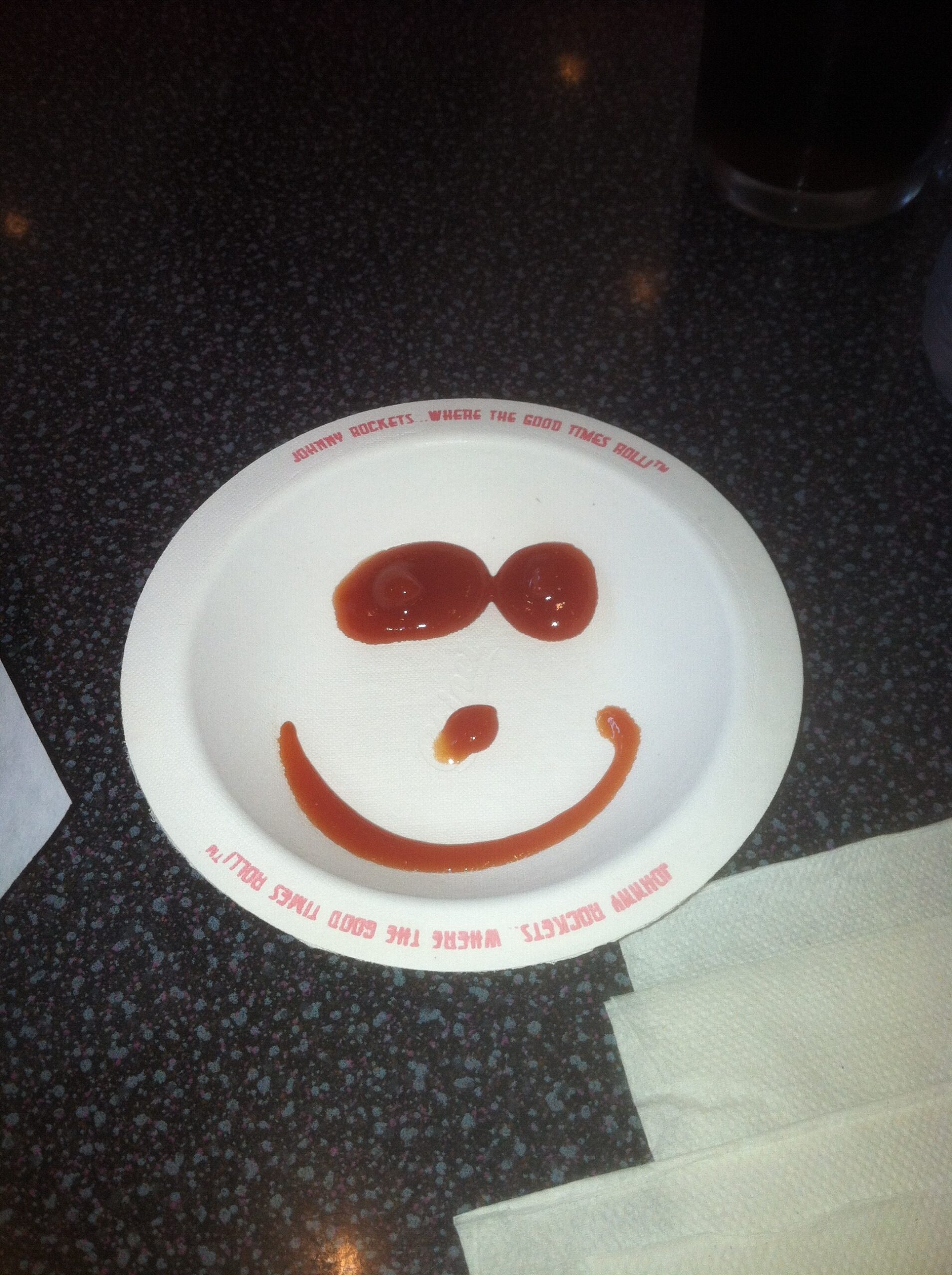 Since Johnny Rockets is not a restaurant we frequent, I must admit that I did not have particularly lofty expectations about the level of service we were going to get from a teenaged waiter at a burger joint in the mall food court.